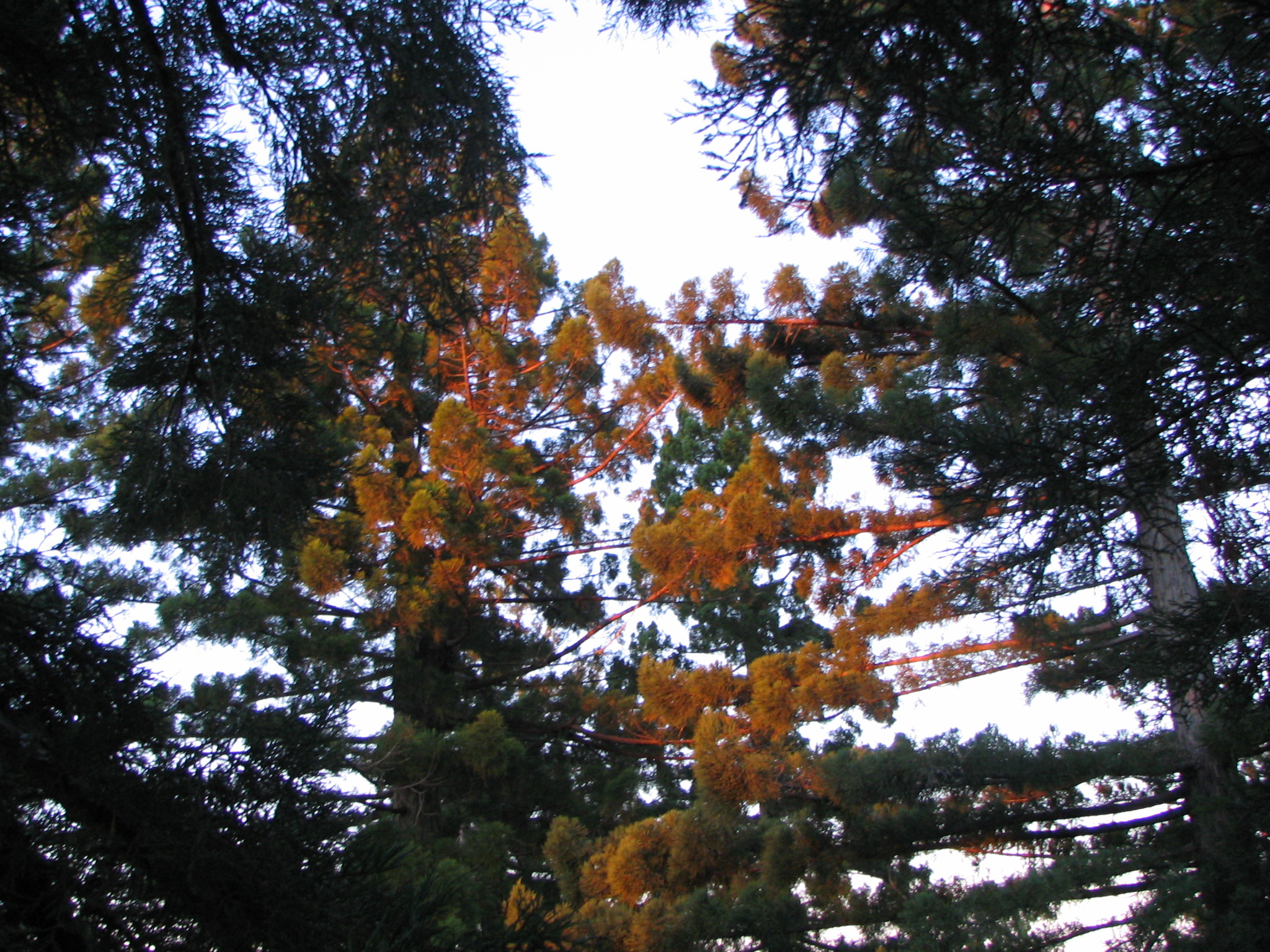 water once the sun rises. We shimmied into our climbing harnesses before dawn to start studying the trees as first light shone into the woods. I remember climbing up a rope in the quiet of night with stars overhead. As I reached the treetop, sunrise made the horizon glow orange and soon the redwood branches were also glowing.