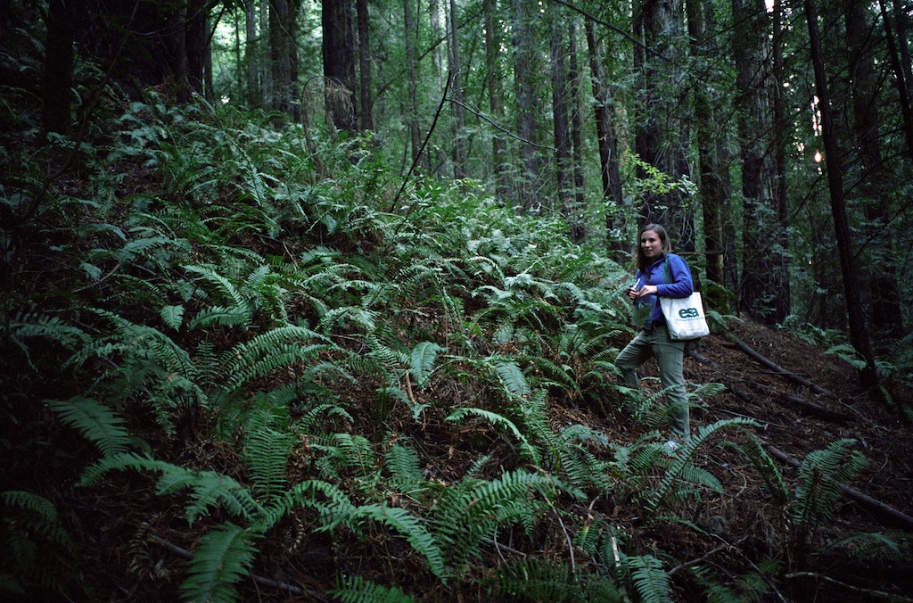 Collecting fern data in 2008 at Roy's Redwoods. Photo by Mike Limm.
