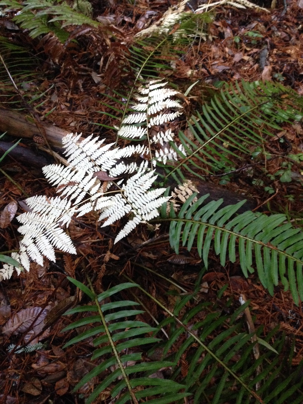 We may not have a typical white winter wonderland here in the coast redwood forest, but we do have spectacular displays of white leaves that appear this time of year. Half of the fern species that live in the coast redwood forest are deciduous, meaning they lose their leaves for part of the year and regrow them in the spring.