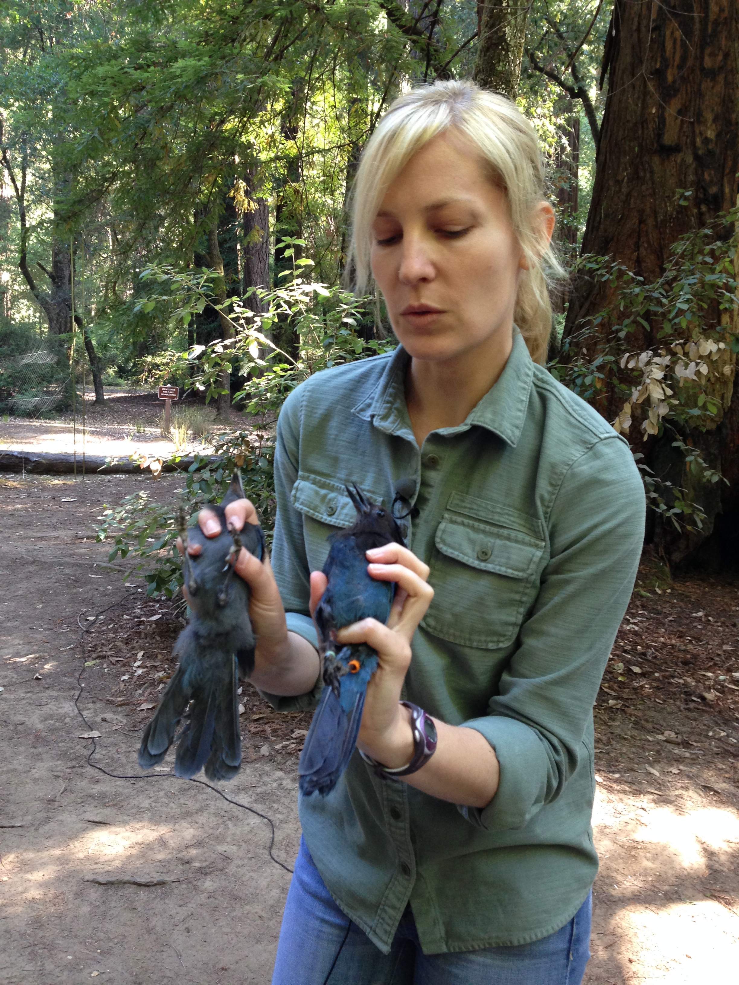 All of this bird tracking has revealed some startling results about Steller’s jay among the redwoods. There are more than 370 banded Steller’s jays in the campgrounds at Big Basin and these birds are incredibly habituated to the presence of people in the park. Steller’s jays have relocated from the canopy into the campground understory to snack on tasty food brought in by park visitors. In fact, these birds don’t bother getting up early, they rise with the campers once breakfast foods start coming out of the coolers! Blood samples shows that half of the food these birds consume is human food containing corn products and the jays have higher lipid levels in their blood than normal for wild populations.