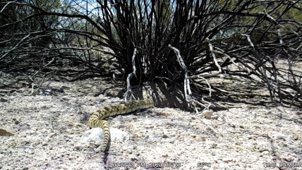Burrows of any size are fascinating to watch with a wildlife camera because you’ll no doubt see the animal that lives in the hole emerge, but also are likely to see potential predators sniff around too. My burrow camera is strapped to a cement block about 5 feet away from a large burrow under a creosote bush and I see a parade of all kinds of animals moving across this patch of desert.