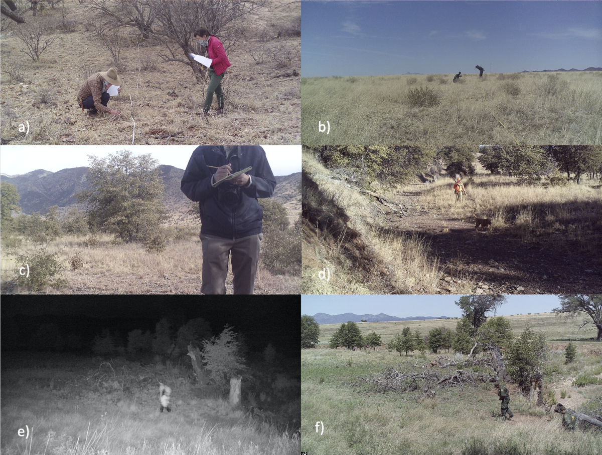 Most of our study cameras are further away from roads, so their detections of humans reflect an unbiased sample of people present along the border in Coronado National Forest and the San Rafael State Natural Area. Human detections include Border Patrol agents, the ranchers (often on horseback) that run cattle over the area, hunters and their dogs, our field crew, and also individuals traveling through the area who may have crossed the border illegally.